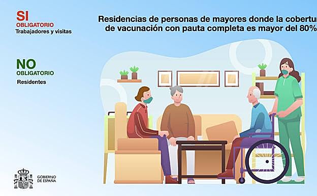 Los residentes no estarán obligados a llevar mascarillas y los trabajadores y visitas deben seguir utilizándolas