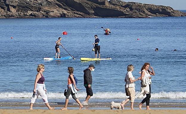Mantener el distanciamiento social de dos metros, no compartir toalla, reducir el tiempo de estancia a dos o tres horas para no saturar los arenales, estrechar la vigilancia a los menores y lavar toallas y trajes de baño tras su uso. Son cinco de las recomendaciones incluidas en la guía elaborada por el Departamento de Salud en previsión del incremento de usuarios que se espera registrarán las playas guipuzcoanas a partir del próximo lunes, dado que el previsible paso de Euskadi a la fase dos conllevará, entre otros, la posibilidad de darse un chapuzón en playas y pantanos y tumbarse el sol. En Gipuzkoa, algunos ayuntamientos como Donostia o Hondarribia ya han decidido que lo permitirán, otros, como Deba, esperan a la decisión mancomunada con otros municipios para «la gestión del uso de la playa» en la fase dos. Pero algunos ciudadanos se adelantaron ayer y sin el permiso aún pertinente se tumbaron en la toalla y se bañaron en alguna playa, lo que obligó a actuar a la Ertzaintza y Policía Local.
