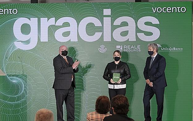 Sonia Olea, de Cáritas, también subió al escenario en nombre de las organizaciones no gubernamentales. Los galardones los entregaron Francisco Fernández Marugán, defensor del Pueblo, y Jesús Trelis, director de 'Las Provincias'.