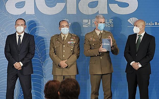 El coronel Francisco Javier Calzado y el comandante José María Martín Corrochano, de la UME, estuvieron en nombre de todos sus colegas. Los reconocimientos se los entregaron Fernando Jesús Ríos, director de Relaciones Institucionales y Grupos de Interés y Sociales de Unicaja Banco, y Manuel Castillo, director de 'Sur'.