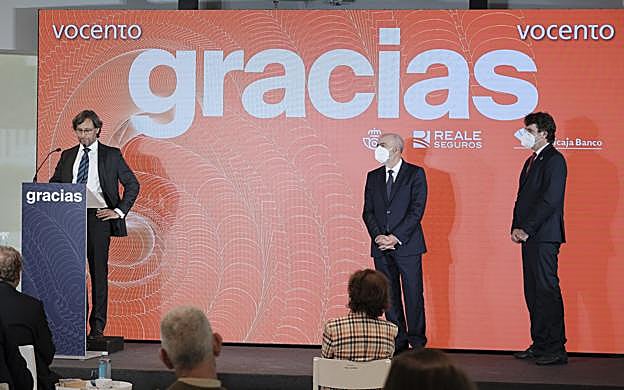 En este acto de homenaje de Vocento no podía faltar el reconocimiento al tejido empresarial, representado por Antonio Garamendi, presidente de CEOE, y Gerardo Cuerva, presidente de Cepyme. Los premios se los entregaron José Luis Martínez Almeida, alcalde de Madrid, y Julián Quirós, director de 'ABC'.