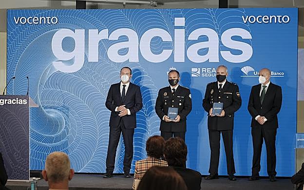 Unos velaron por nuestra salud, otros por nuestro bienestar y ellos por nuestra seguridad. Son los organismos de Seguridad y Defensa, representados en este homenaje de Vocento por el subinspector Francisco Castillo y el agente Francisco López, policía local y nacional de Málaga.