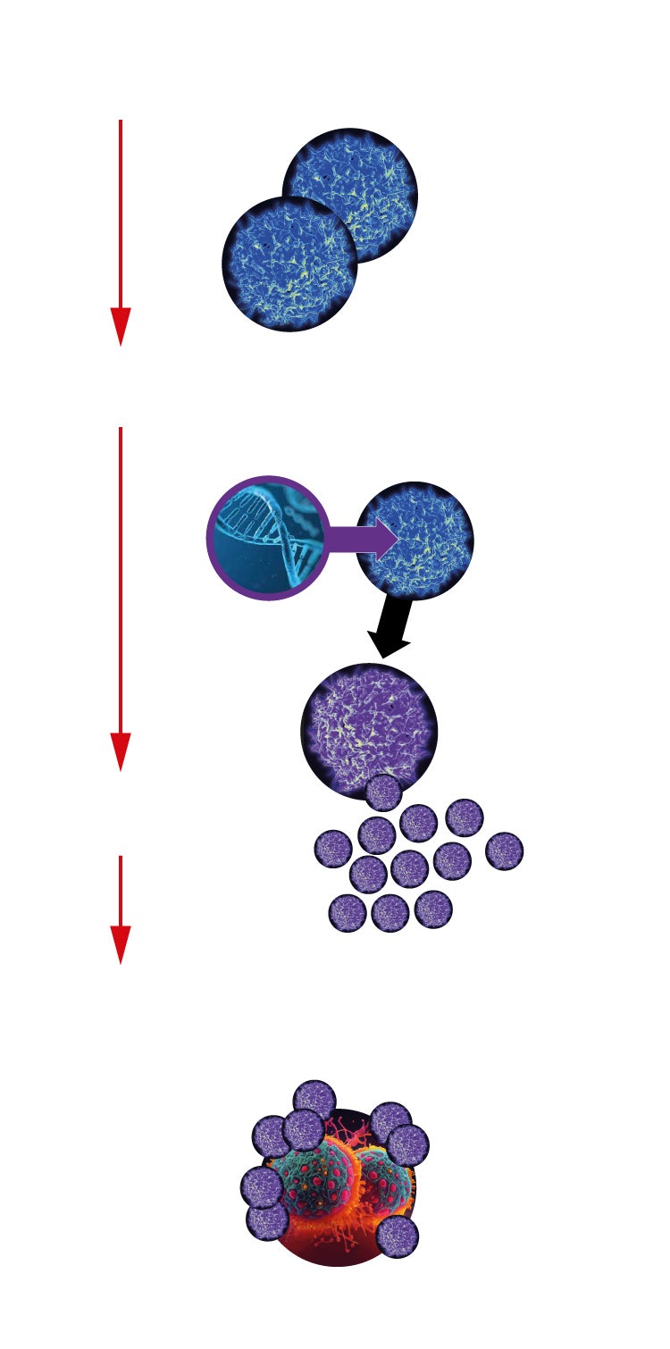 Se introducen en el paciente. Las células T se unen a las cancerosas y las destruyen.