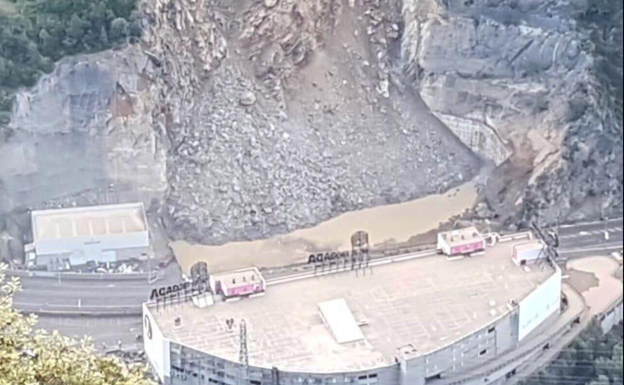 El desprendimiento se ha producido sobre las seis de la mañana y no ha provocado heridos ya que prácticamente no circulaban vehículos, pero sí desperfectos materiales en un centro comercial cercano, que ha tenido que ser evacuado por seguridad.