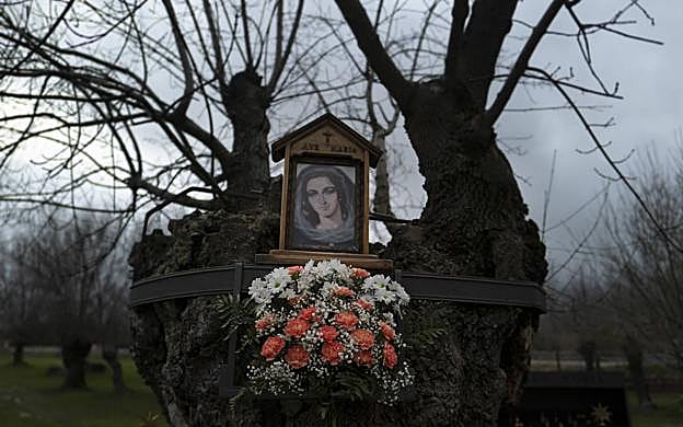 La virgen en Prado Nuevo del Escorial. Multitud de fieles de este lugar donde supuestamente se apareció la Virgen María acuden cada día a rezar el rosario.