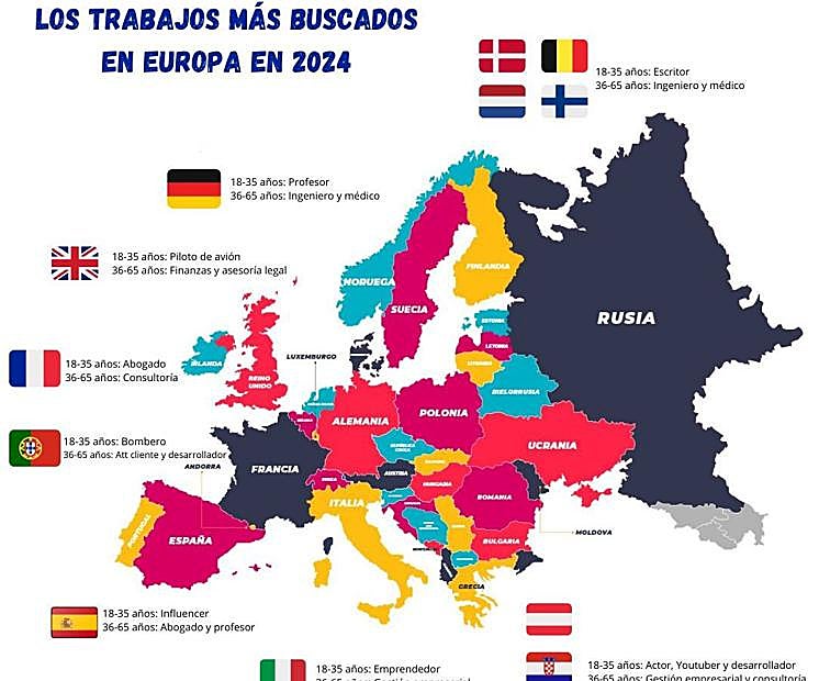 Un estudio revela las profesiones más buscadas en diversos países europeos este año por los jóvenes, una visión detallada de las aspiraciones laborales de las personas de entre 18 y 35 años de edad en el continente