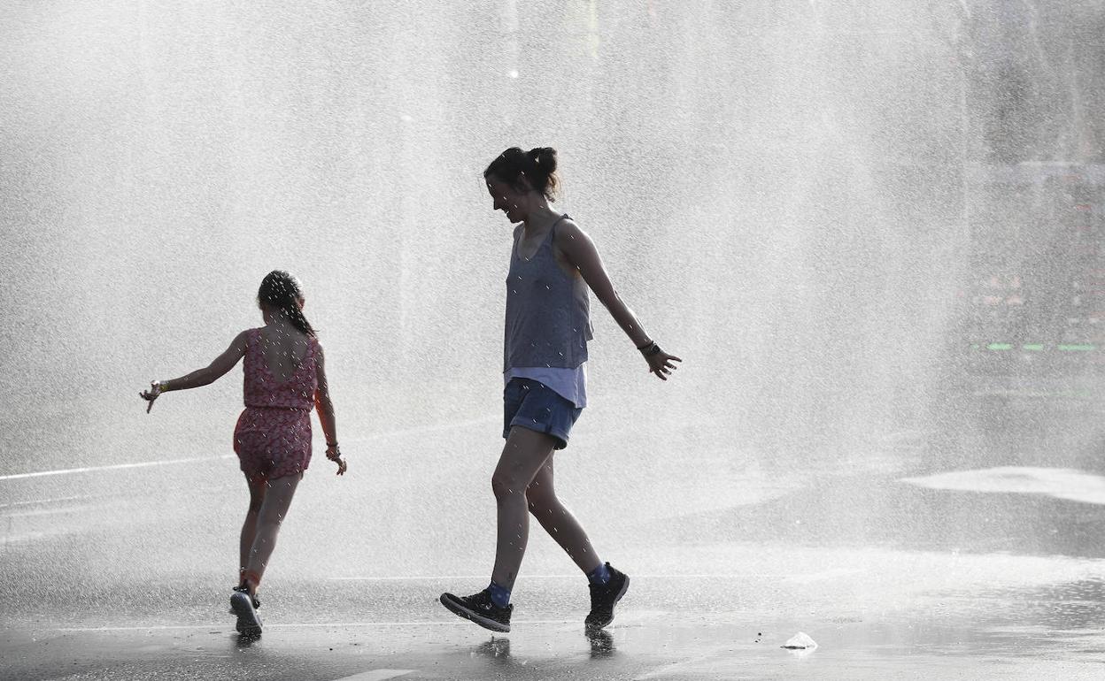 Dos jóvenes se refrescan en una fuente de Vitoria, durante la pasada ola de calor. EFE/Vídeo: E. P.