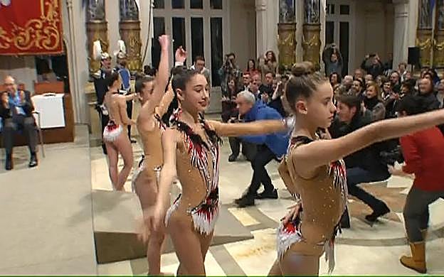 Seis gimnastas del club donostiarra han puesto la nota de color a la ceremonia, al acompañar, dibujando diferentes figuras y ejercicios, a su presidente, Carlos Fraile, quien ha recibido la medalla y ha expresado su agradecimiento y "orgullo" por merecer dicha distinción.