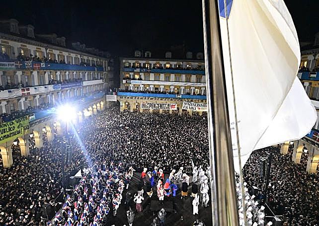 La Izada de las celebraciones pasa a la historiaDonostia vuelve a emocionarse cuando una plaza de la Constitución a reventar entona una 'Marcha de San Sebastián' que lo deja muy claro: Festara!