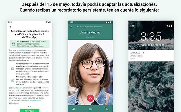 Al mismo tiempo y fijando como fecha límite el próximo 15 de mayo, la página de soporte de WhatsApp reflejaba importantes limitaciones a quienes no aceptasen la mentada política. Las mismas que ahora acaba de matizar. Si en un primer pomento se dijo que estos usuarios no podrían «leer ni enviar mensajes» desde el próximo sábado, ahora el periodo de gracia se amplía a «unas semanas».