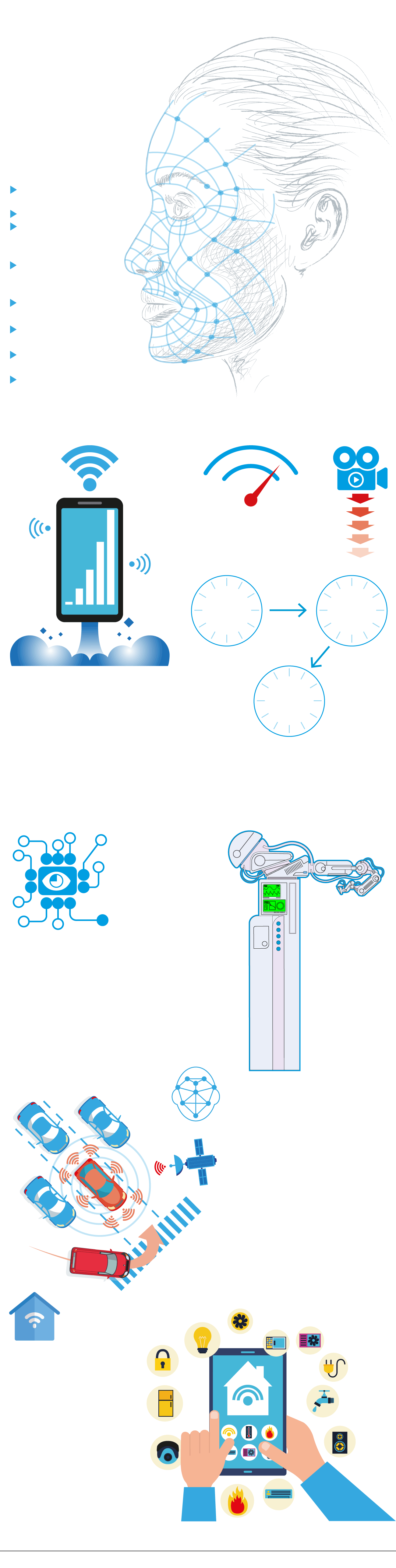 Todo tipo de dispositivos pueden conectarse a la red, no solo smartphones. Vehículos, robots industriales, mobiliario urbano (badenes, calzada, paradas de autobús) o cualquier dispositivo electrónico que tengamos en casa (desde la alarma alarma la lavadora, la nevera o el robot aspirador ) podrán conectarse y compartir información en tiempo real.