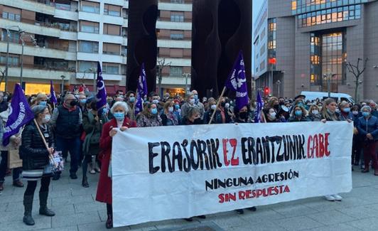 Ya han sido varias las veces este año que los vecinos de Barakaldo han tenido que salir a las calles para condenar las agresiones sexuales en el municipio, pero la protesta de este martes lo ha hecho con mayor contundencia. Cientos de personas se han concetrado en la plaza Bide Onera para denunciar el ataque en grupo sufrido por una mujer en el interior de un portal en la madrugada del sábado al domingo, por el que dos jóvenes ya han ingresado en prisión, mientras que otros dos, uno de ellos menor de edad, permanecen identificados.