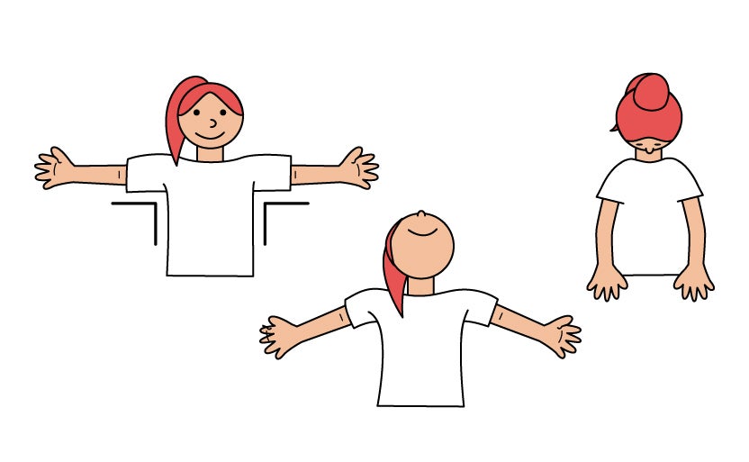 Abra los brazos en cruz, formando un ángulo de 90 grados respecto al tronco. Después, llévelos hacia atrás, como si quisiera juntar sus omóplatos, al mismo tiempo que lleva su mirada hacia el techo e inclina la cabeza hacia atrás. Salga de la postura lentamente, relajando su cuerpo hacia delante.
