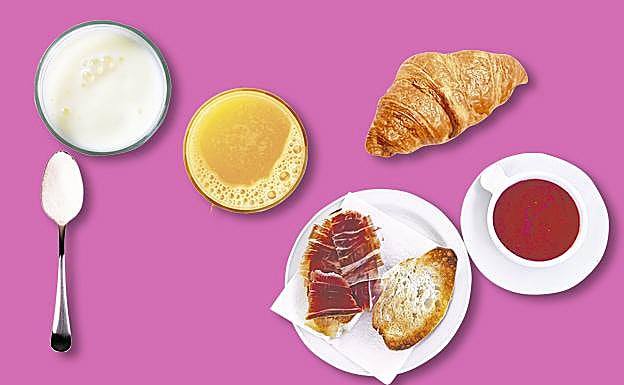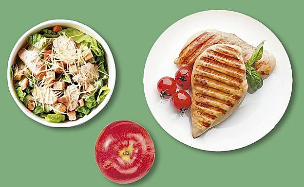 Vean la prueba del exceso en estos dos menús confeccionados para este reportaje. Poco se ha añadido a mano: media cucharadita de azúcar al café, un puñadito de sal a la ensalada y otro a las pechugas... «De los casi 10 gramos de sal que consumimos al día, solo dos los añadimos directamente al plato. El resto, el 80%, es 'sal oculta' que se halla, principalmente, en embutidos, pan, quesos...», alerta Manuel Moñino, miembro del centro de análisis de la evidencia científica de la Academia Española de Nutrición y Dietética.