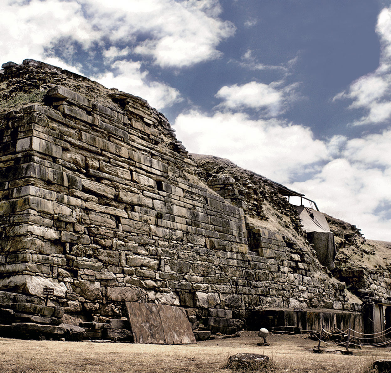 El monumento –ubicado en la actual región de Ancash, en el corazón de los Andes peruanos– está surcado por un laberinto de canales subterráneos que drenaban el agua que bajaba de las montañas circundantes. En estas misteriosas galerías los sacerdotes iniciaban a los peregrinos, que viajaban hasta allí desde lugares muy lejanos: oscuros corredores de piedra en los que los peregrinos sufrían el trance iniciático.