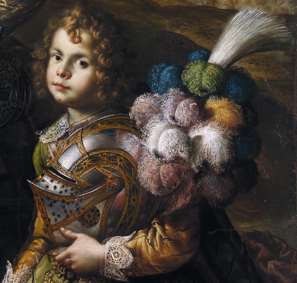 Carlos V incorporó las armaduras a la pintura. Su primer retrato armado, obra de Tiziano, se perdió en un incendio y sólo nos han llegado copias de otros artistas. El más conocido, sin lugar a dudas, es su posterior retrato a caballo en la batalla de Mühlberg, también de Tiziano. El emperador, de brillante armadura y lanza en ristre, se erige en defensor de la fe y del ideal de una Europa unida ante los príncipes protestantes alemanes. El arte –pinturas, tapices, esculturas, armaduras–, al servicio de la propaganda política.