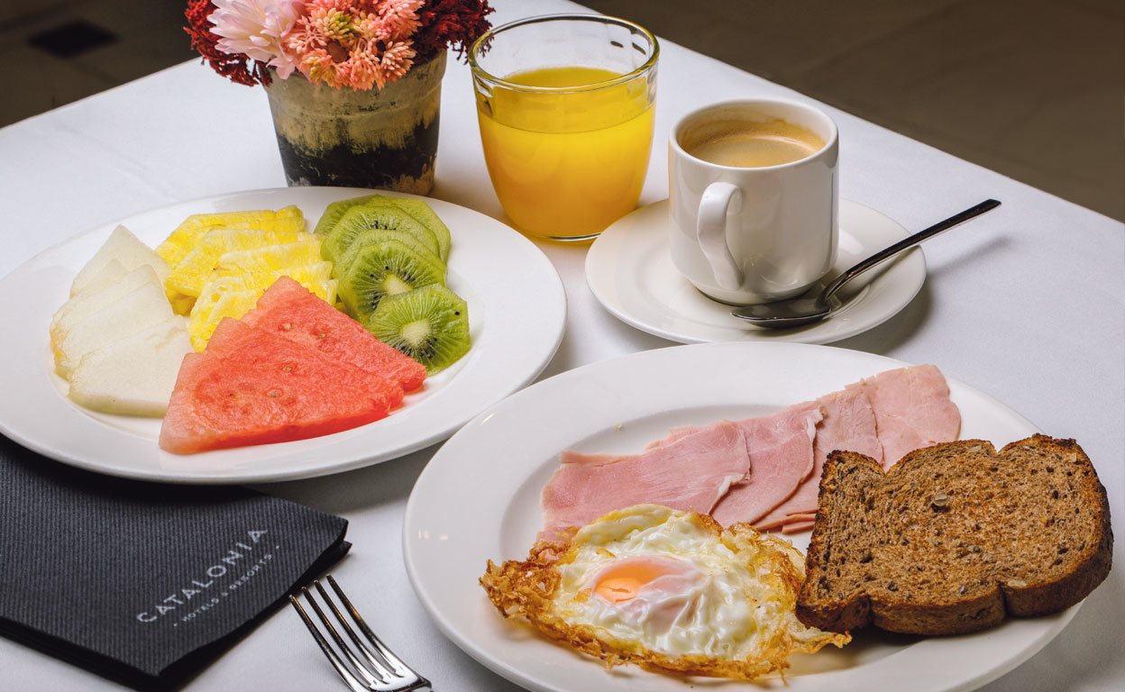 «Tomo fruta de temporada, jamón dulce o pavo. Una rebanada de pan de semillas, un huevo frito (con puntillas), un zumo de naranja y un café largo con poca leche».
