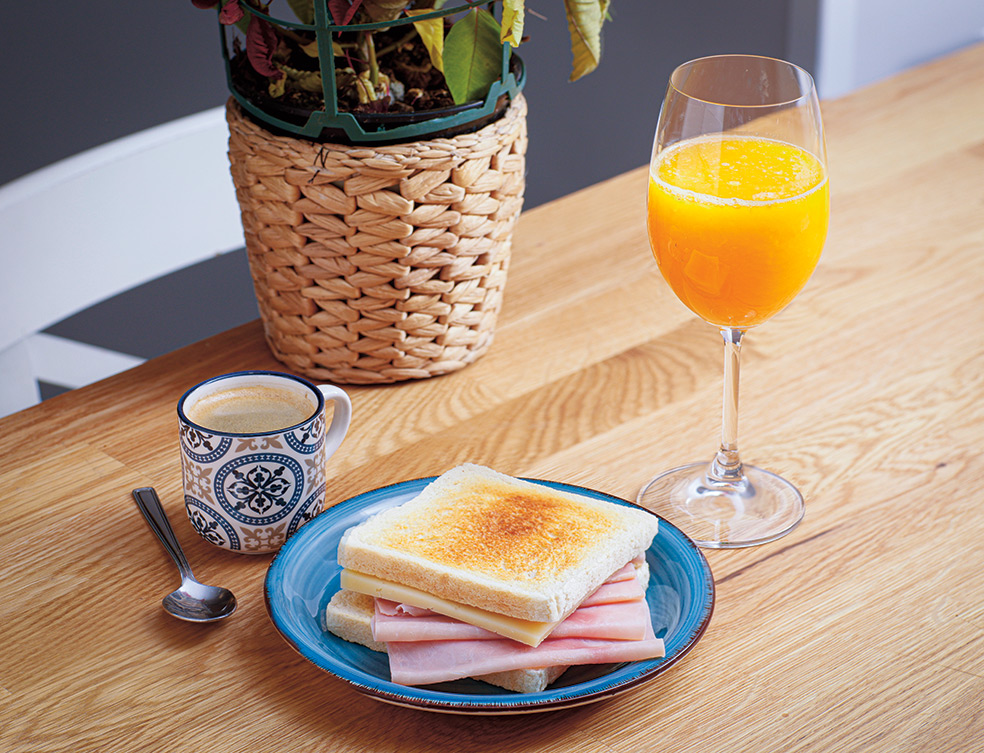 «Tomo un sándwich mixto, zumo de naranja y café con leche».