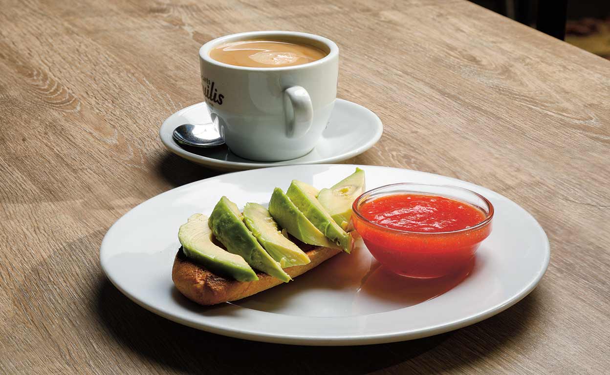 «Café con leche; tostada de pan de centeno con aguacate; y un kiwi o una manzana. Que mi marido me lo prepare cada mañana le da un plus de sabor».