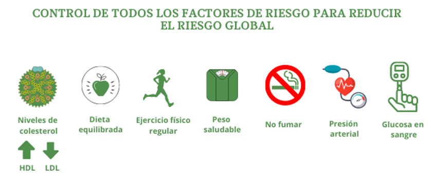 Hay que bajar los niveles de colesterol, seguir una dieta equilibrada, practicar ejercicio físico, evitar la obesidad y el sobrepeso, no fumar, y controlar los niveles de presión arterial y glucosa en sangre